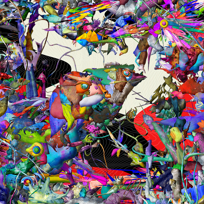 @@@@Fertile Island 2-L (2015) @@@@Digital collage: Limited Edition 3/6 @@@@35~35 inches (89.4~89.4cm) @@@@pigment-based inkjet print on fabric print media, @@@@synthetic resin,@mounted on wood panel