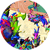 手描きのドローイングなどを素材にデジタルコラージュした作品です。