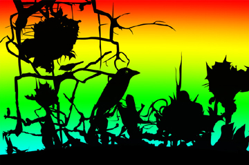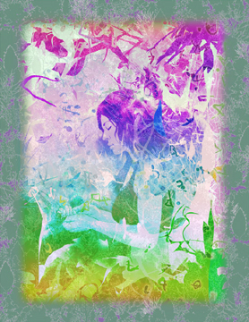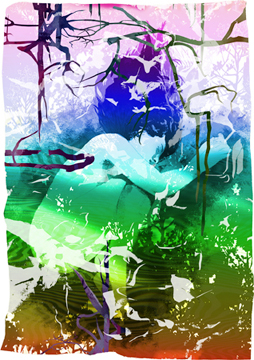 化繊クロスに顔料インクジェットプリント、合成樹脂加工 シートサイズ 40.5×40.7 cm (余白含む) ↓detail