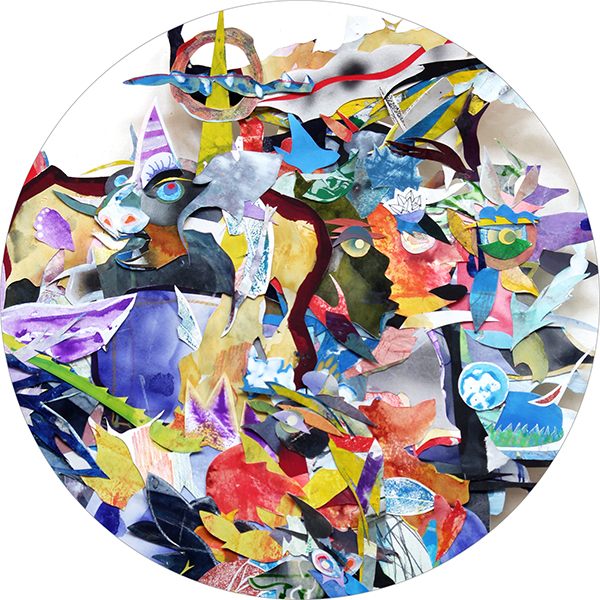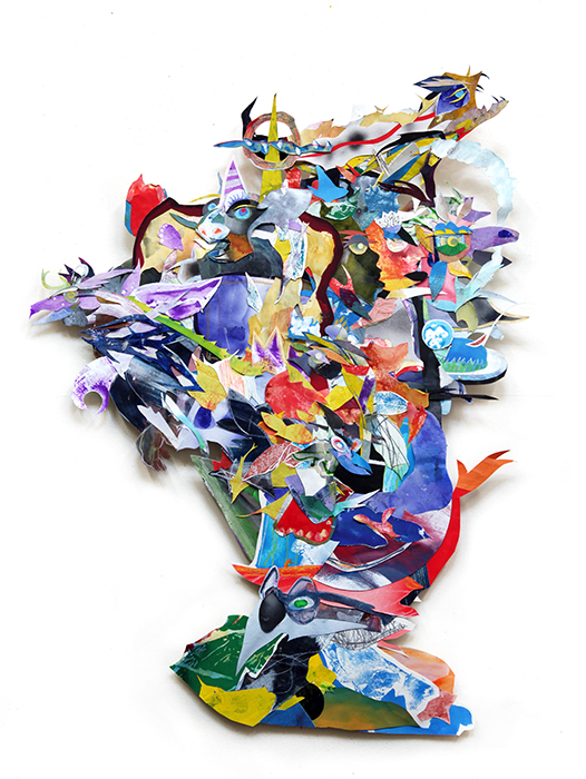 “Fertile Island_ac01” 2014 collage of hand-painted material of hard paper 24 2/3×18 2/3 inches (63×48cm) Original private collection