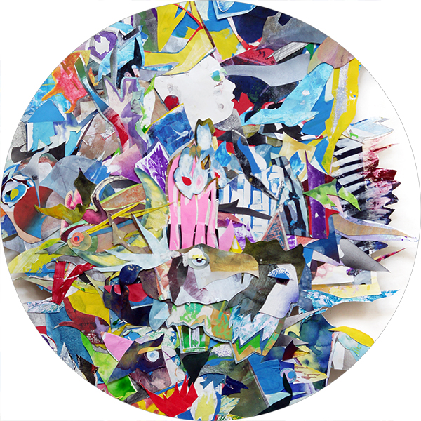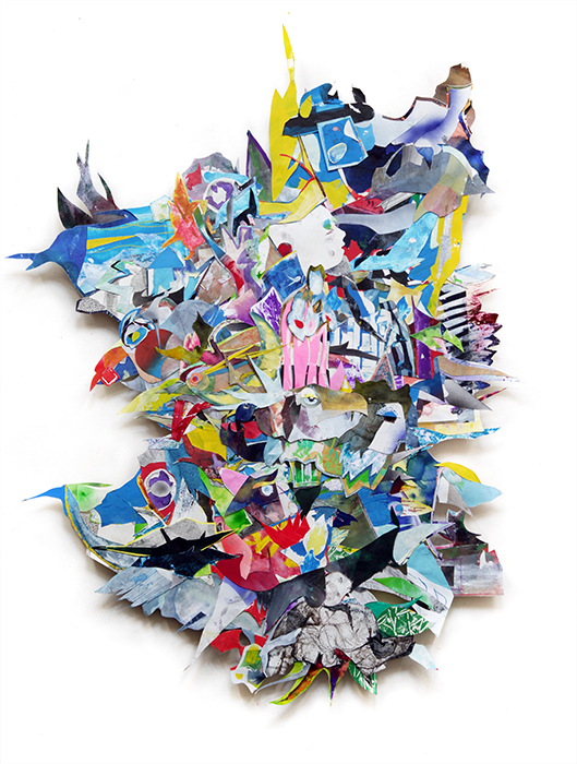 collage of hand-painted material of hard paper