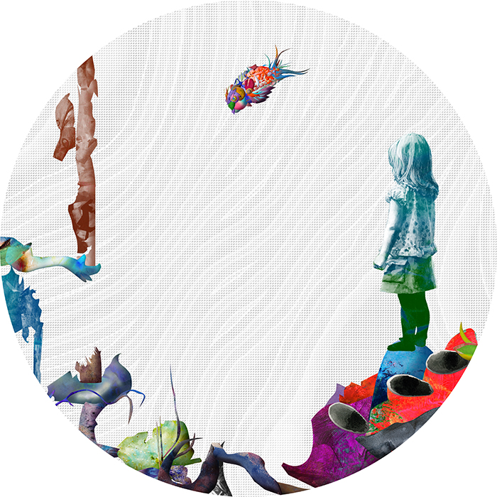 Little visionary (2010) Digital collage: Limited Edition1/6 48×27×1inches (120×68.6×2.5cm) pigment-based inkjet print on fabric print media, synthetic resin, mounted on wood panel